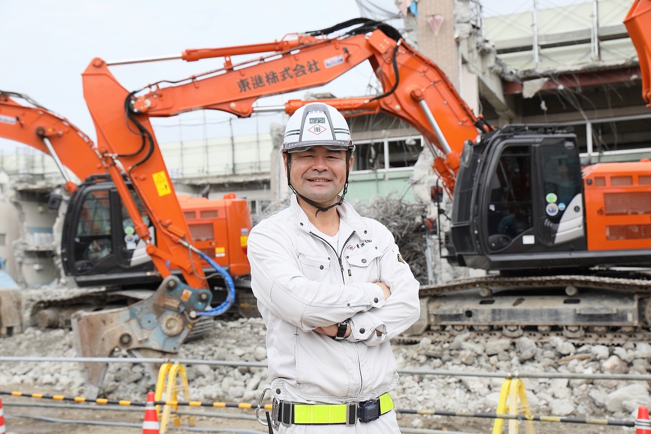 東進株式会社では、関東エリアをメインに総合解体事業を行っています。解体工事を通じて皆様の生活に安心と安全をお届けできるよう、ハイクオリティ施工を徹底しています。”解体工事”ときくと、壊すだけというイメージが大きいですが、何か新しいものが誕生する最初の1歩の作業でもあります。そんなやりがいのあるこの仕事に誇りと情熱を持ち、日々の業務に努めています。